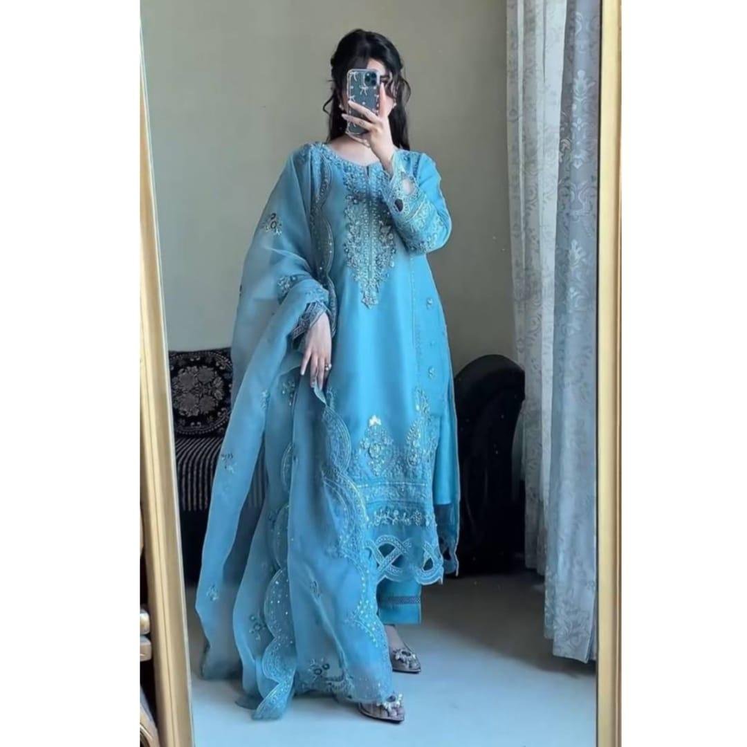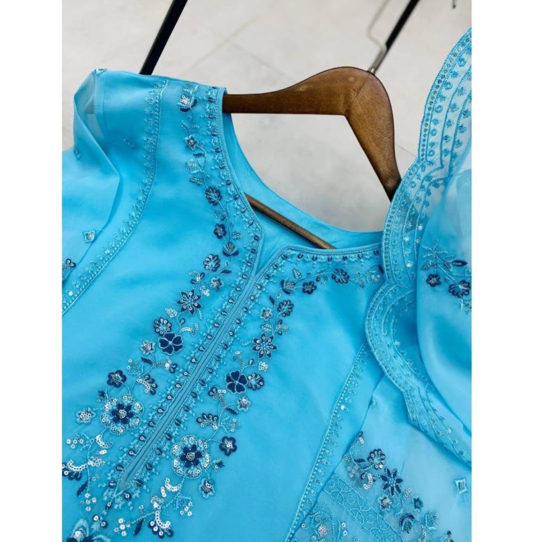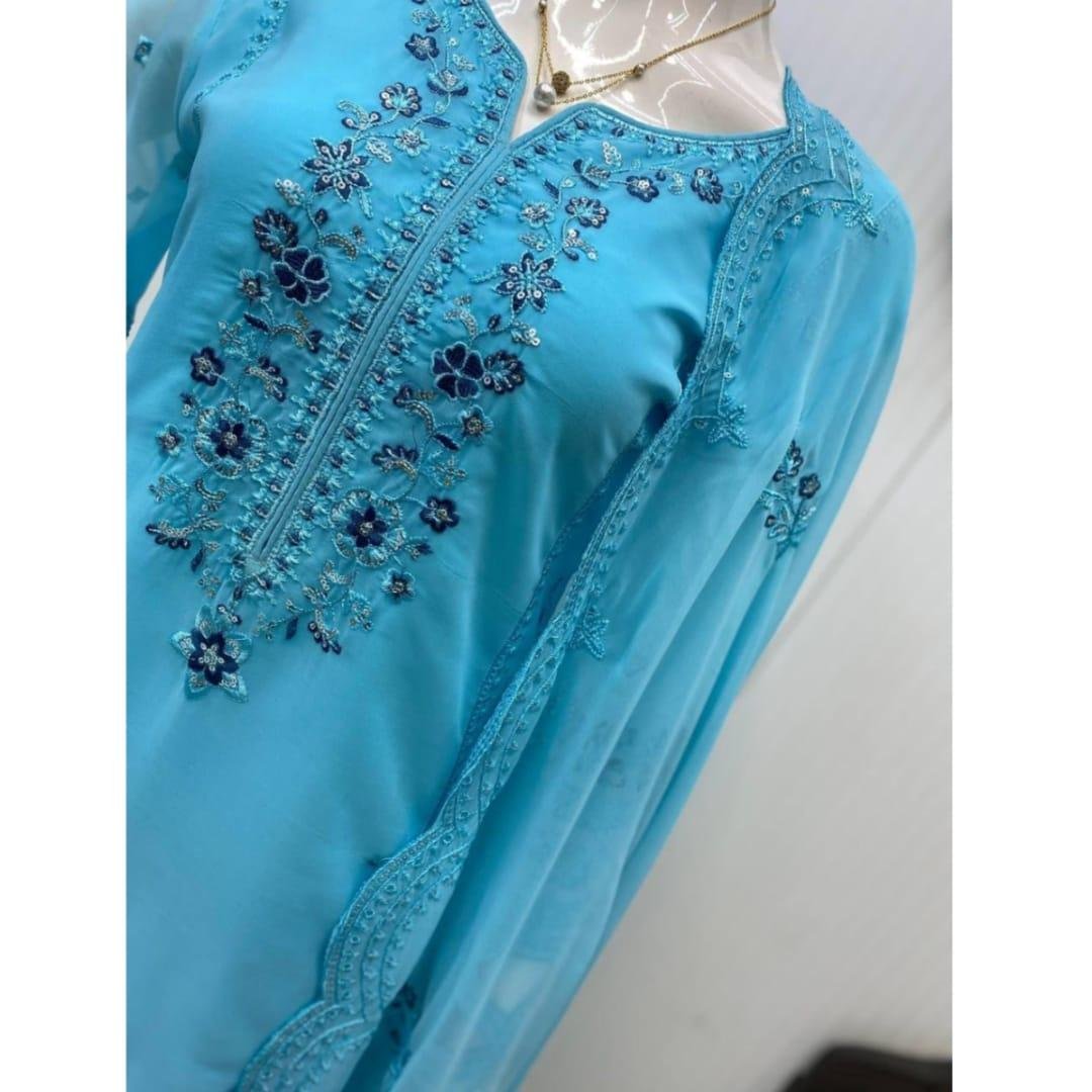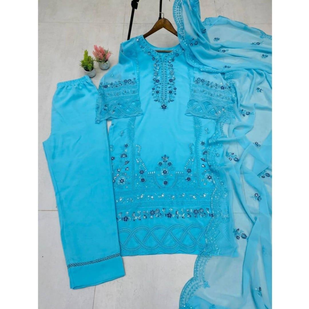 Upgrade your ethnic wardrobe with this stunning Designer Wear Exclusive Suit crafted in premium georgette fabric. Perfect for parties, festive occasions, and special gatherings, this elegant outfit features beautiful sequence embroidery and stylish cutwork detailing.
