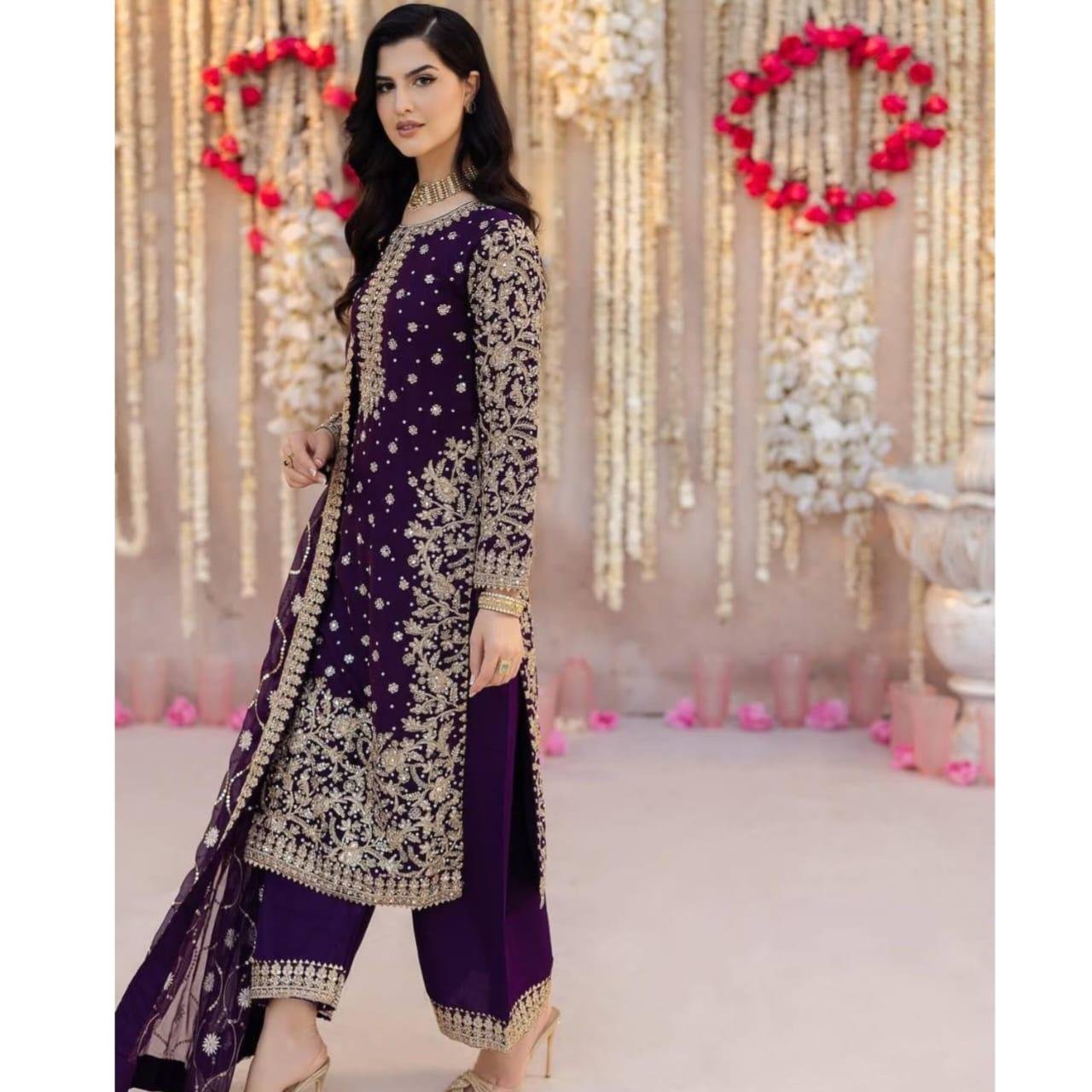 Top Fabric :Heavy Faux Georgette With 5mm Embroidery Sequence Work with Beads Work With Full Sleeve