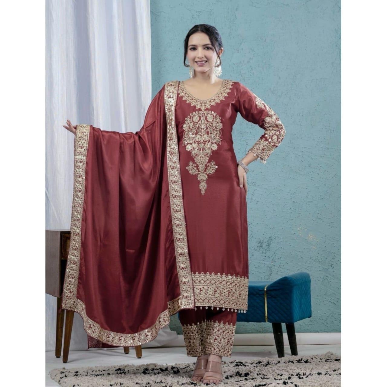 💃Pant fabric :Pure Heavy Chinnon Silk With Heavy Embroidery Coding Sequence Work (FullyStitched)