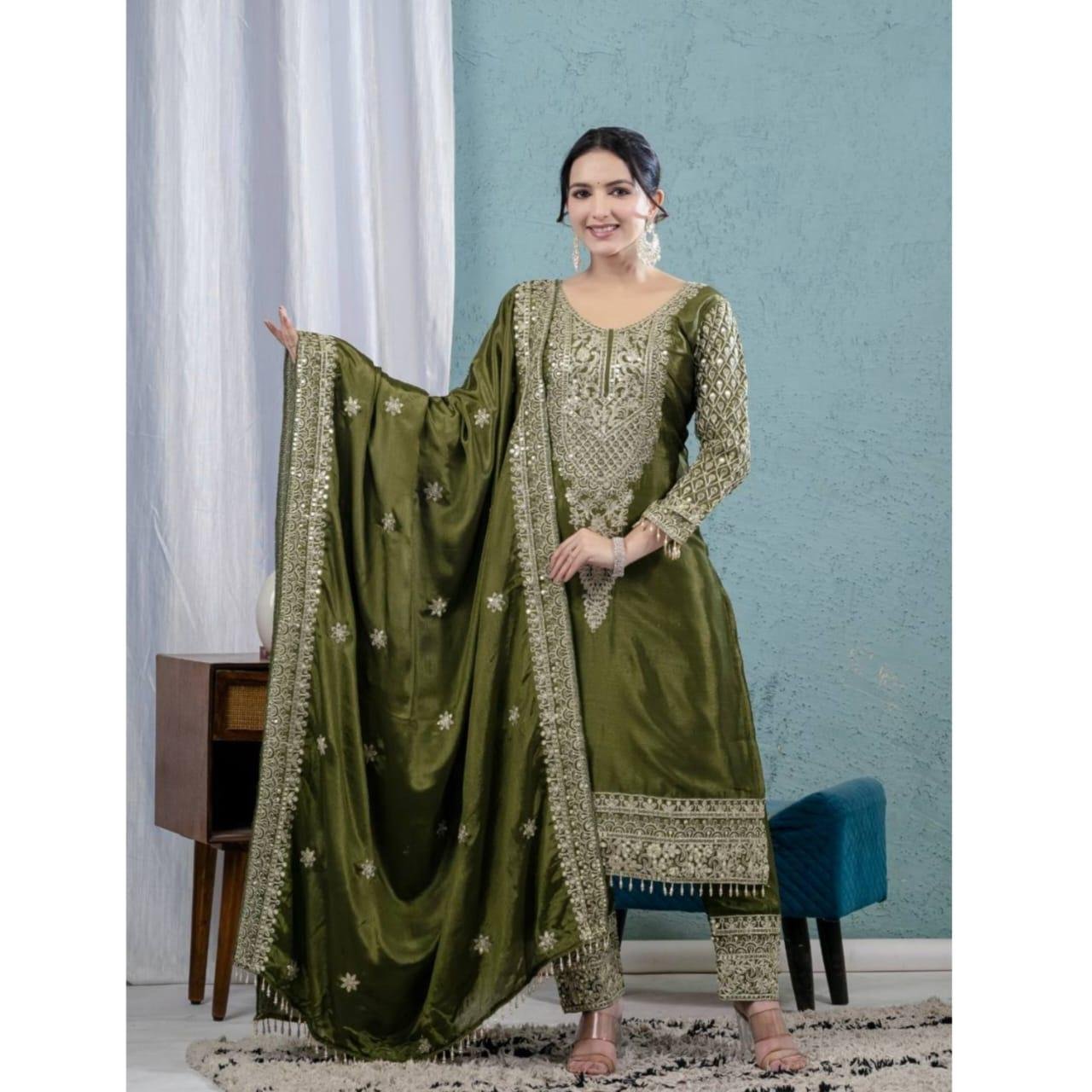 💃Pant fabric :Pure Heavy Chinnon Silk With Heavy Embroidery Coding Sequence Work (FullyStitched)
