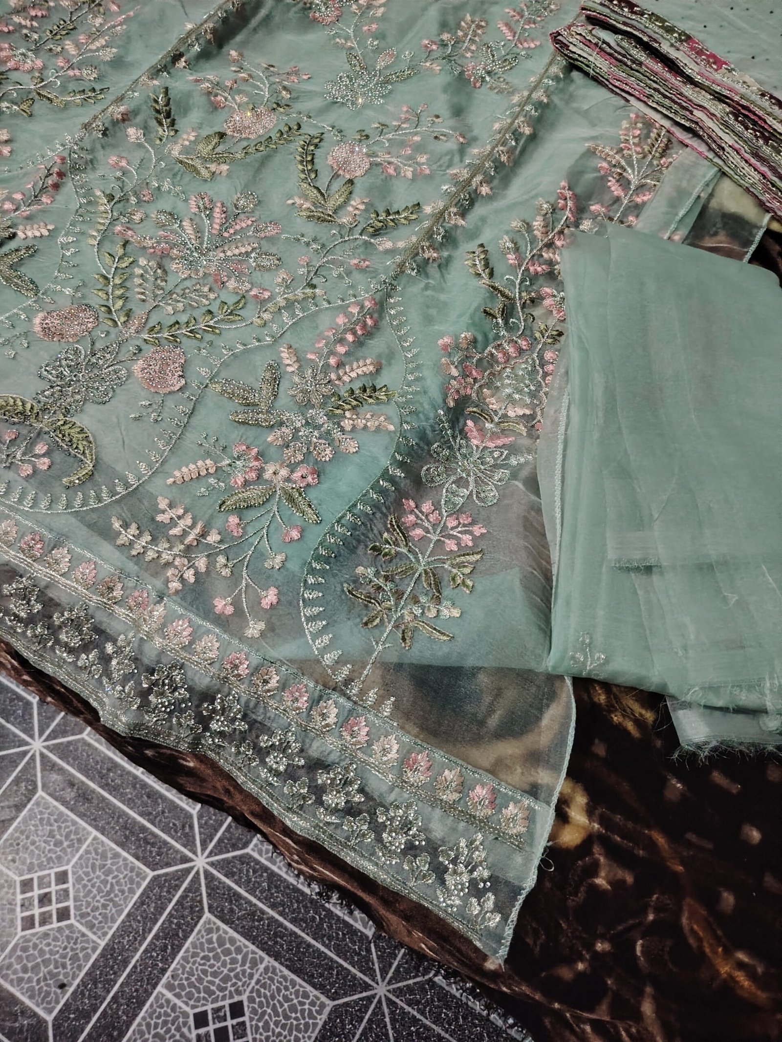 Elevate your ethnic wardrobe with our Premium Organza Embroidered Suit Set, designed for women who love elegance with comfort. Crafted with fine-quality organza fabric, this suit features intricate embroidery that adds a graceful and luxurious touch to your look.