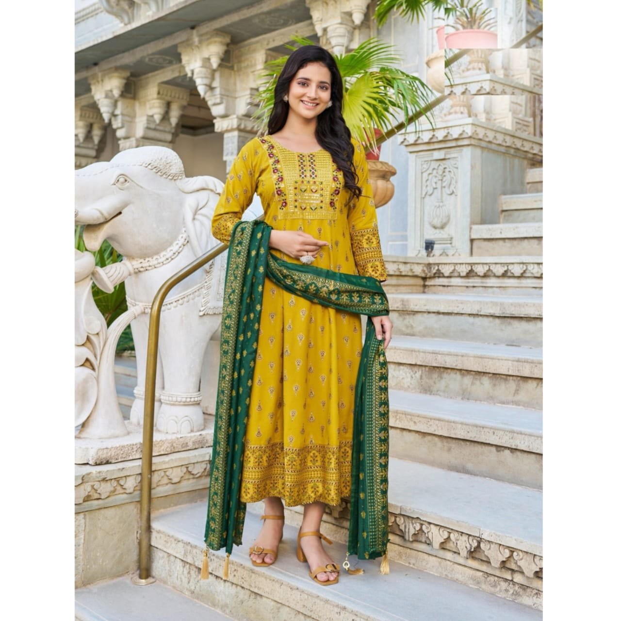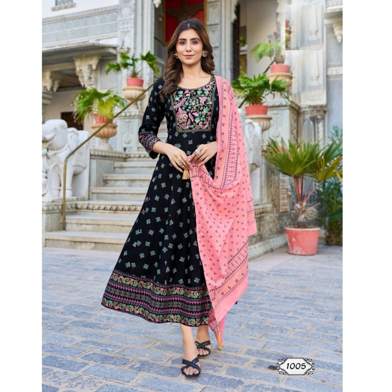 Today presenting Anarkali Heavy Rayon Gown With Dupptta With Embroidery and print